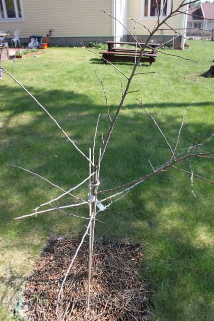 Istutettiin kaksi puuta kaksi vuotta sitten: Yksi kirsikkapuu ja yksi luumupuu.